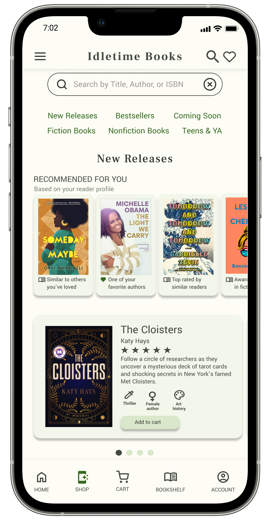 Idletime Books is a local bookstore* interested in expanding its customer base with a new mobile app. They offer a wide range of books across categories and formats and cater to busy readers who need more efficient ways to discover & purchase new books.